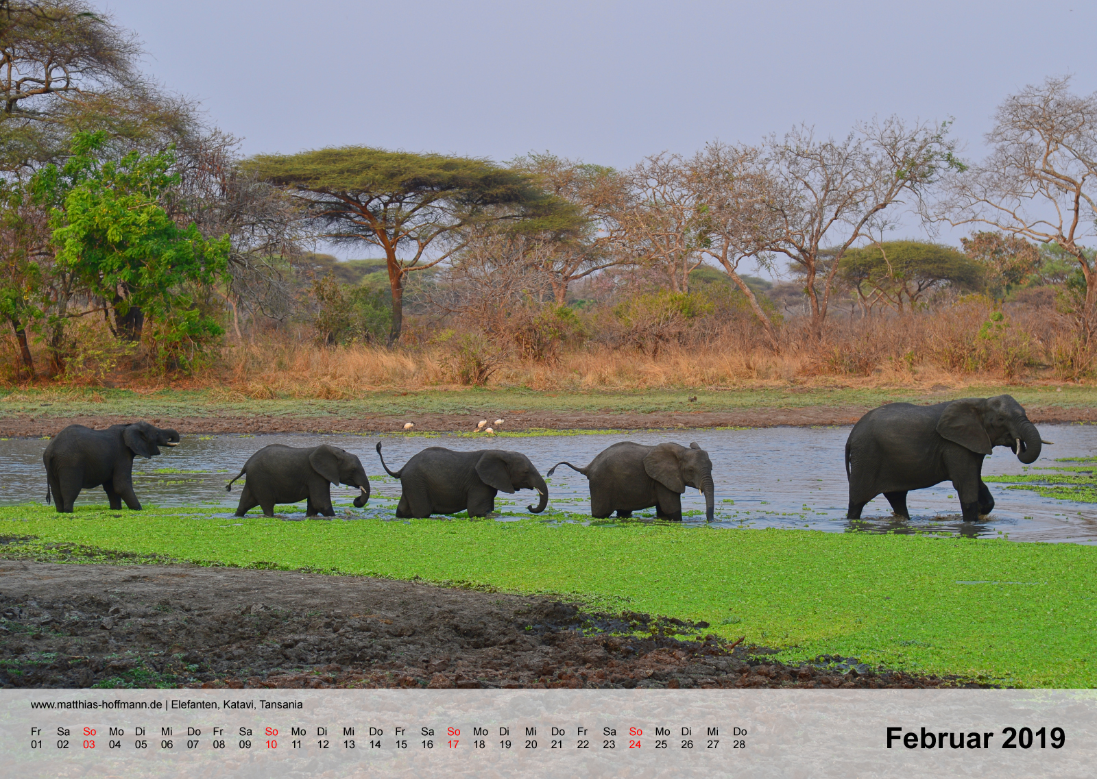 Elefanten, Katavi, Tansania | Kalender 2019 - Februar